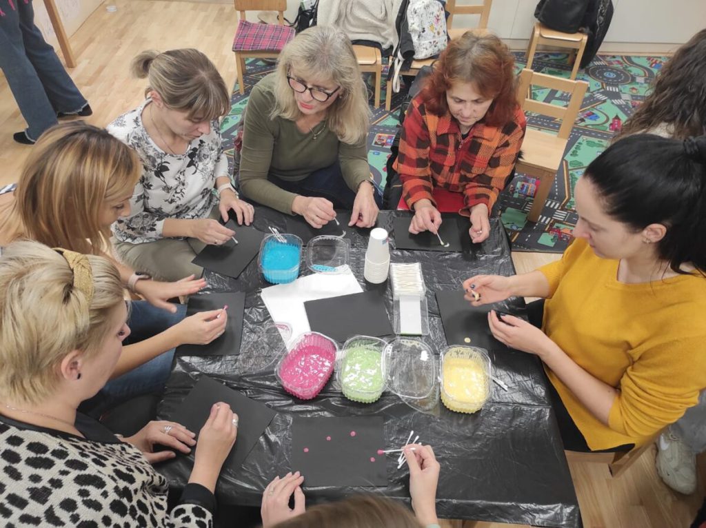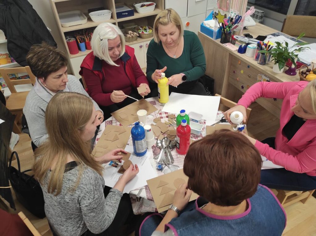 Kao i svakoga mjeseca, i u studenom smo se okupili kako bi se educirali, stručno usavršavali i razvijali svoje znanje, vještine i kompetencije. Tema radionice na Odgojiteljskom vijeću 23.11.2023. bila je “Likovne tehnike u radu s djecom predškolske dobi”, a vodila ju je Lidija Lovrenčić Hosi, prof. likovne kulture.